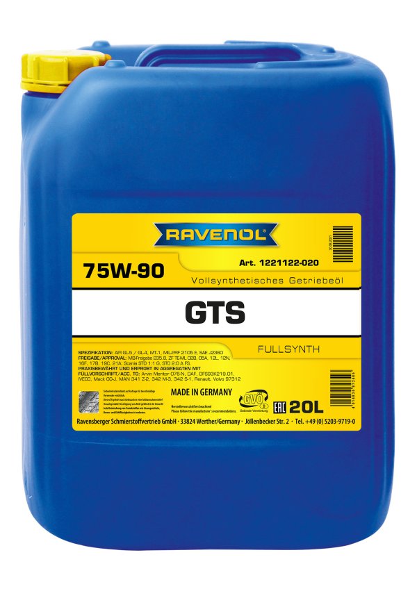 RAVENOL GEAR TRANS SYNTH GTS SAE 75W-90 is a full synthetic axle drive oil based on the latest full synthetic components for commercial vehicles.