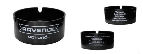 The round, black RAVENOL ashtray is a functional item for any smoking area and bears the eye-catching RAVENOL logo.