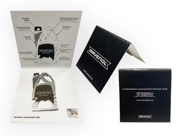 The practical RAVENOL Key-Tool is an essential multi-tool for every key ring.